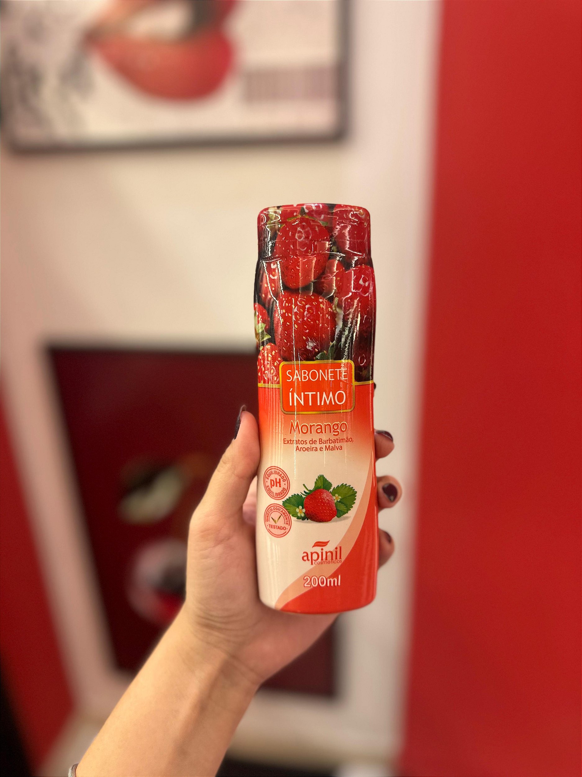 Sabonete Íntimo Aroma de Morango 200ml Apinil Cosméticos.